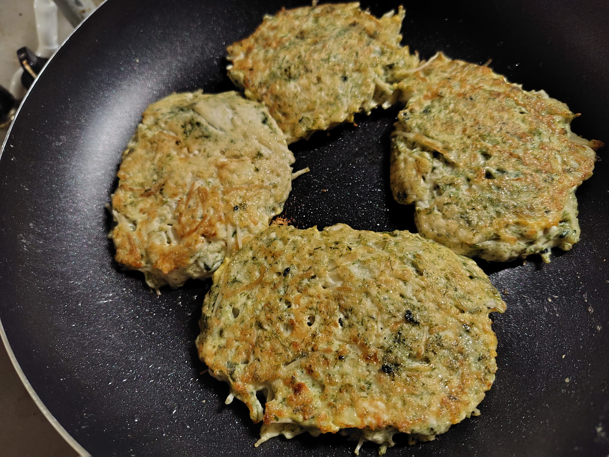 水切り豆腐、えのき半分、片栗粉、卵、チーズ、青海苔、牡蠣油、ガラスープの素を混ぜて焼くだけ。