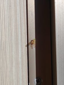 縞模様の蝿? 投稿日: 2026/01/14 投稿者: きょうこ お福と日向ぼっこをしていたら蝿?が来た。 羽根に縞々の柄入りが珍しくて写真撮る。 幸い、お福は興味ナシ、しばらく観察できた。 もしこれが長女猫エミだったら、蝿の命はなかったかもしれない。 エミは夏には蝉を狩り、お煎餅のように毎年食べていた。 古いアパート時代はゴキブリを捕獲し私の枕元で自慢したことも。 お福は何も狩りをしない。 猫にも個性があるんだなあ。