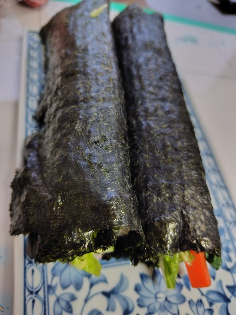 朝、二人で恵方巻きを南南東に向かって黙して食す。
