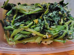 大好き、ほうれん草 投稿日: 2026/02/15 投稿者: きょうこ フライパンに少し油を敷き、洗って切ったほうれん草を入れる。 その上に卵を一つ割り落とし、醤油少し垂らし蓋して蒸す。 意外に水分が出るが、簡単なおかずが出来上がる。 お湯を沸かして茹でて絞って、が面倒な時はコレ。 白和えもイイ、ほうれん草が美味しいこの季節、卵との相性抜群!