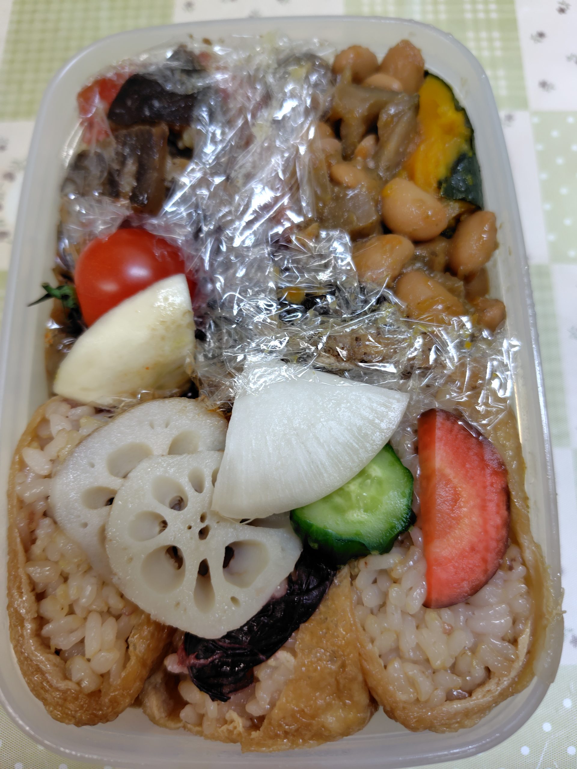 先日は久しぶりに稲荷寿司のお弁当。 油揚げに味がついているので、中身は酢飯ではなくただのご飯。 ご飯は普通に盛る方がずっとラクだが、たまには違うのもイイ。 ついついワンパターンになりがちなお弁当。 文句なくいつも食べてくれる夫に感謝しなくては。 昔6年もお弁当を作ってくれた母にお礼を言ったことはなかった。 生きてる母に感謝が言えて「間に合って良かった」と思う …