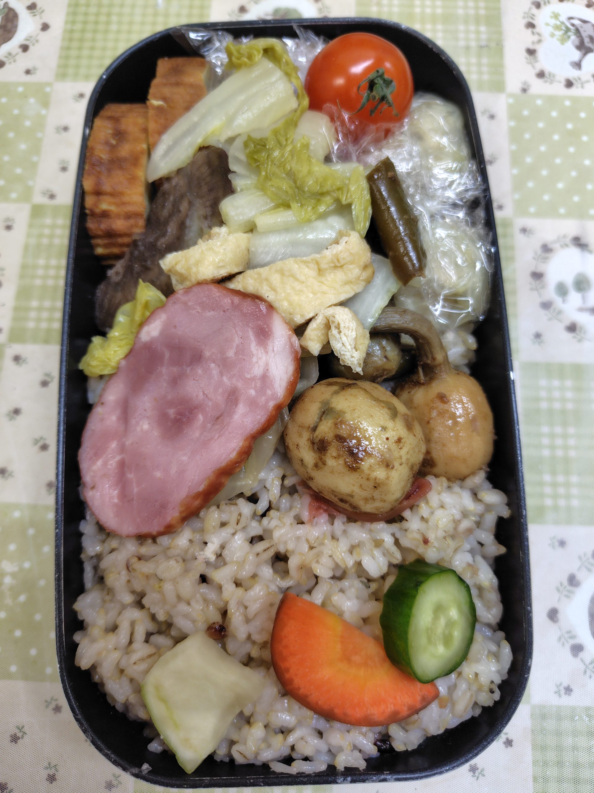 お正月気分 投稿日: 2026/01/21 今月、特に前半はお弁当作りが楽だった。 お正月料理は大抵、日持ちするものが多い。 普段、絶対買わない頂き物のハムでしばらく手抜き。 煮物も伊達巻も黒豆も季節感があって良い。 ワンパターンからしばし脱却できた。 元よりご馳走はないが、今月はお菓子の食べ過ぎに要注意だ。 続きを読む>
